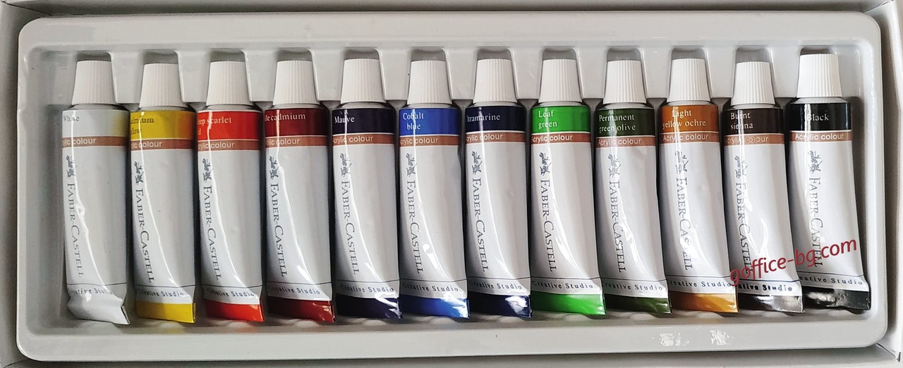 Универсални акрилни бои Faber-Castell в тубички от 12 цвята х 20 мл.