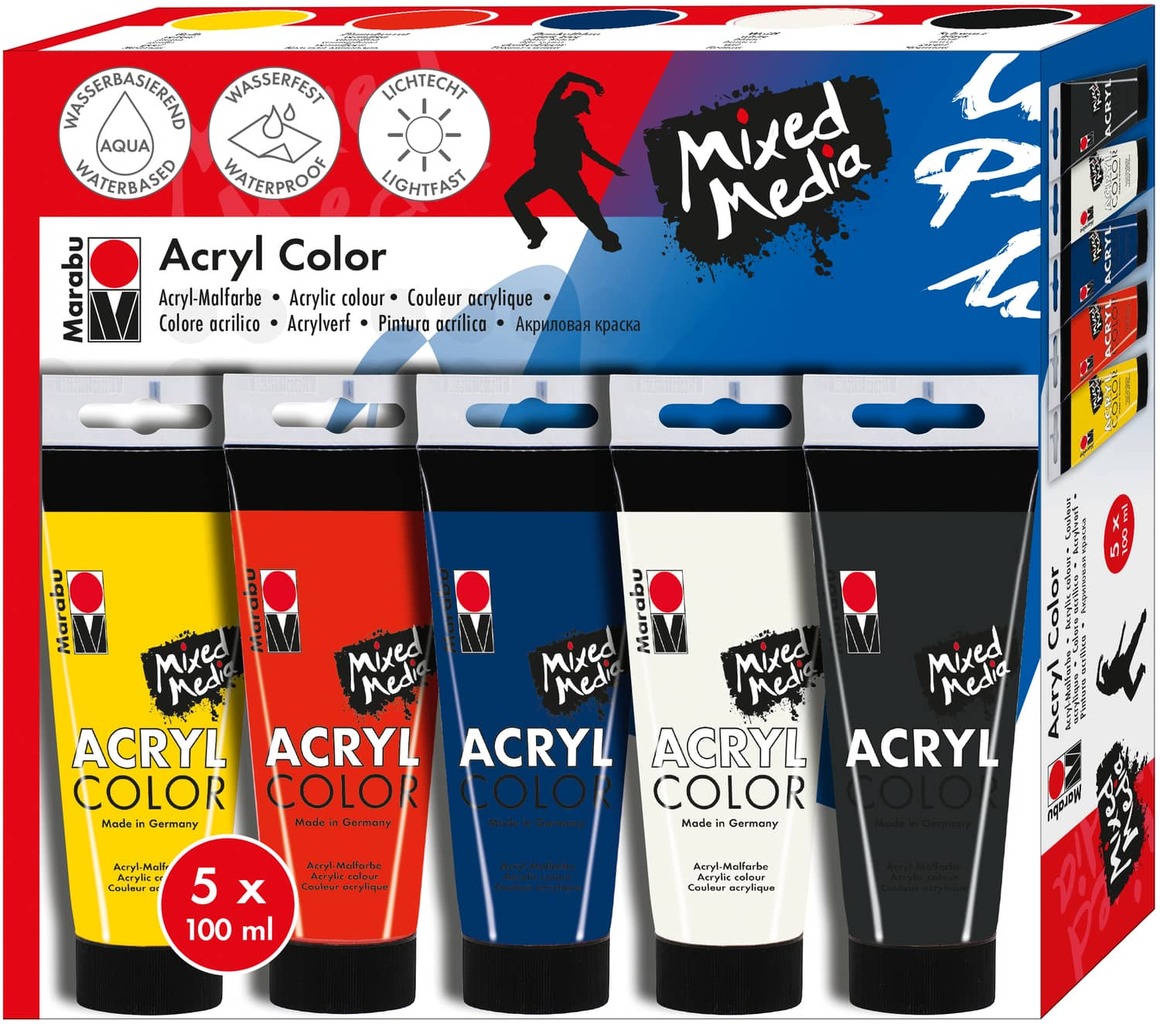 Универсални акрилни бои Marabu Acryl Color в тубички от 5 цвята х 100 мл.