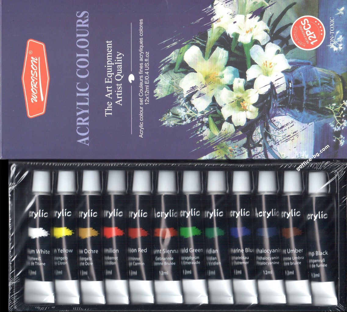 12 цвята в комплект по 12 мл.