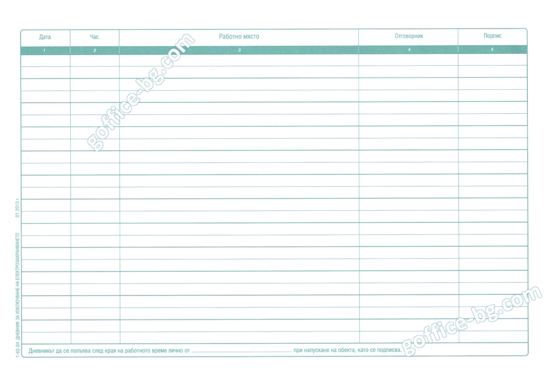 Дневник за изключване на електрическото захранване след работно време