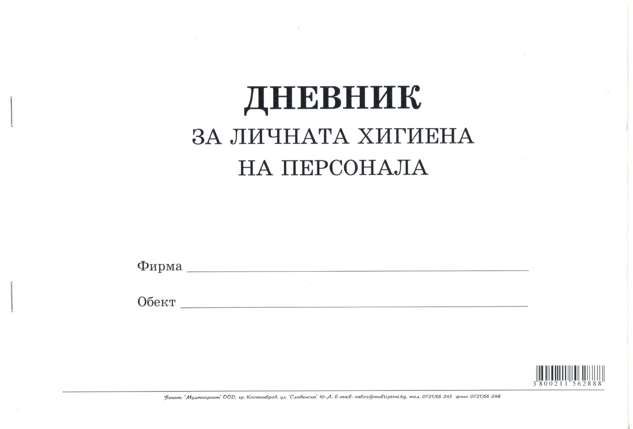 Дневник за личната хигиена на персонала