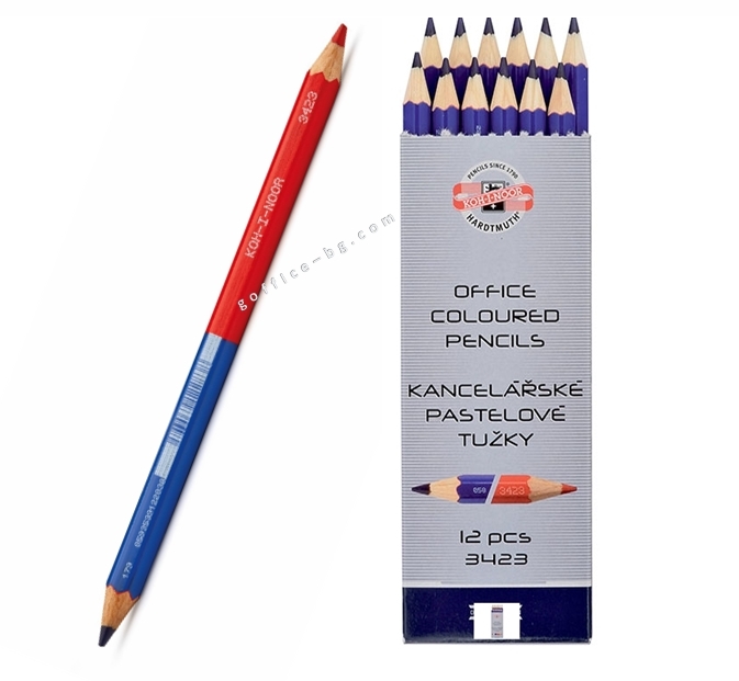 Двуцветен графитен молив: син от едната страна и червен от другата