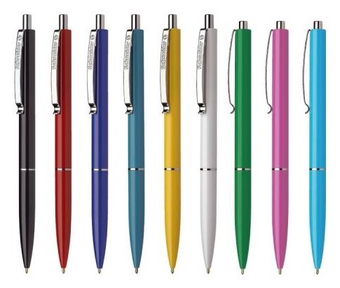Тънка автоматична химикалка със стабилен метален клип, синьопишеща
