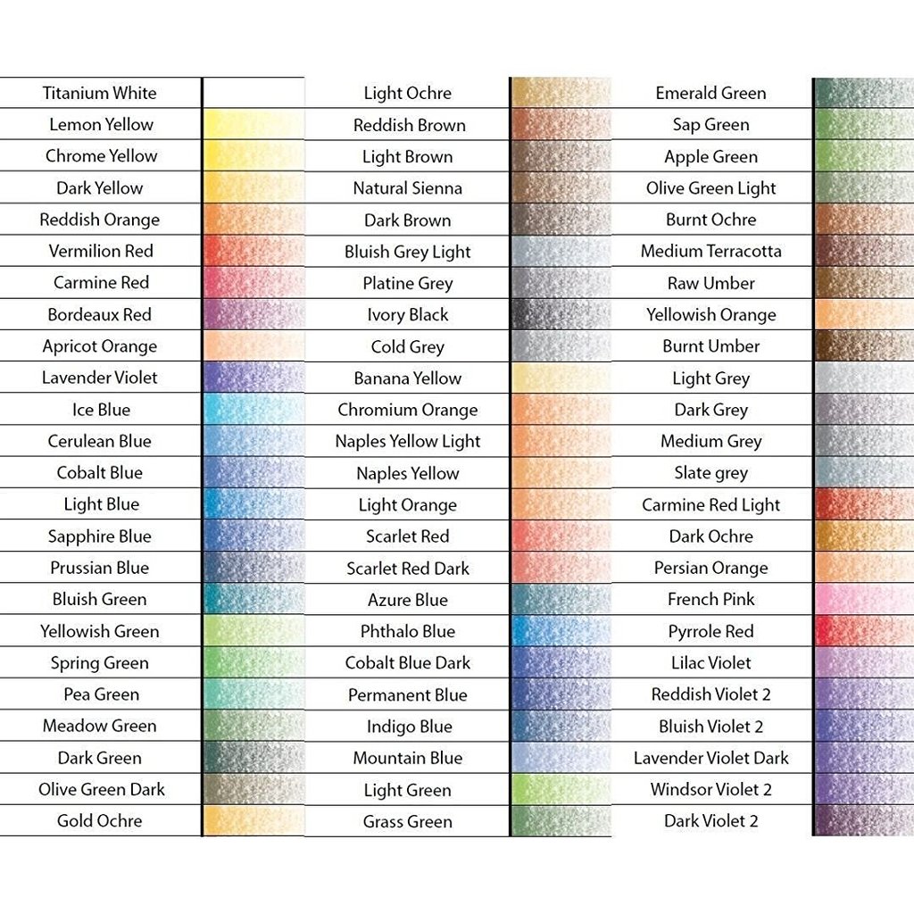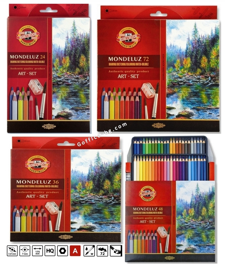 Предлагат се комплекти от 24 цвята, 36 цвята, 48 цвята и 72 цвята в картонена кутия