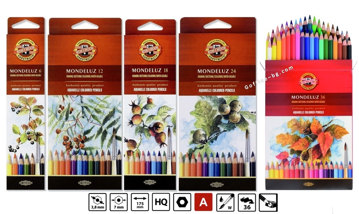 Предлагат се комплекти от 12 цвята, 18 цвята, 24 цвята и 36 цвята в картонена кутия