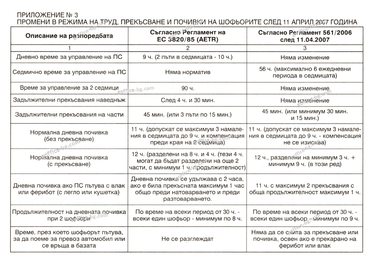 съгл. регл. 561/2006 и регл. на ЕС 3820/85 /AETR/