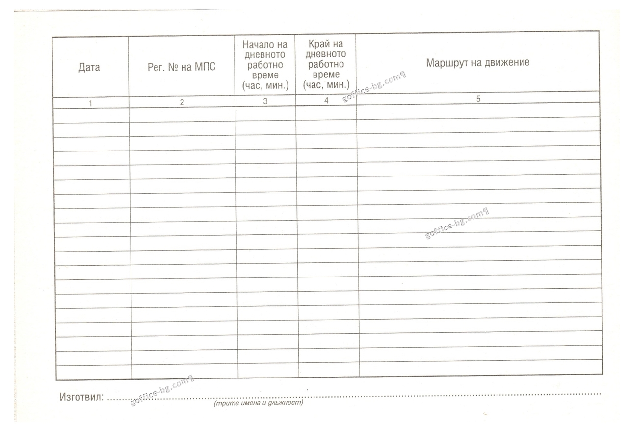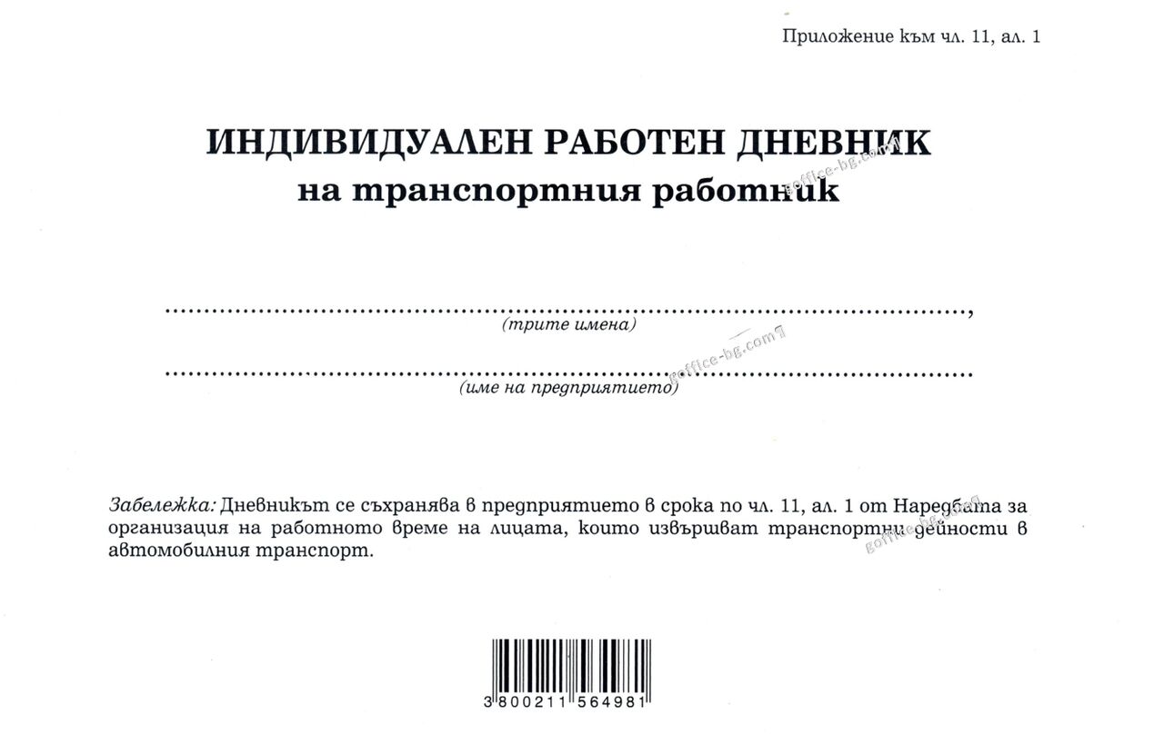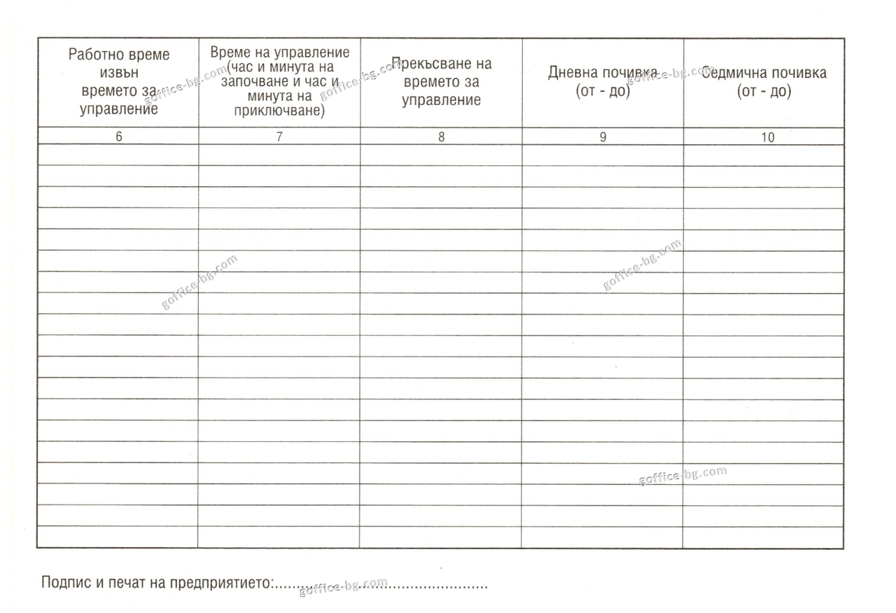 Индивидуален дневник на транспортния работник за почивките и прекъсванията на шофьорите