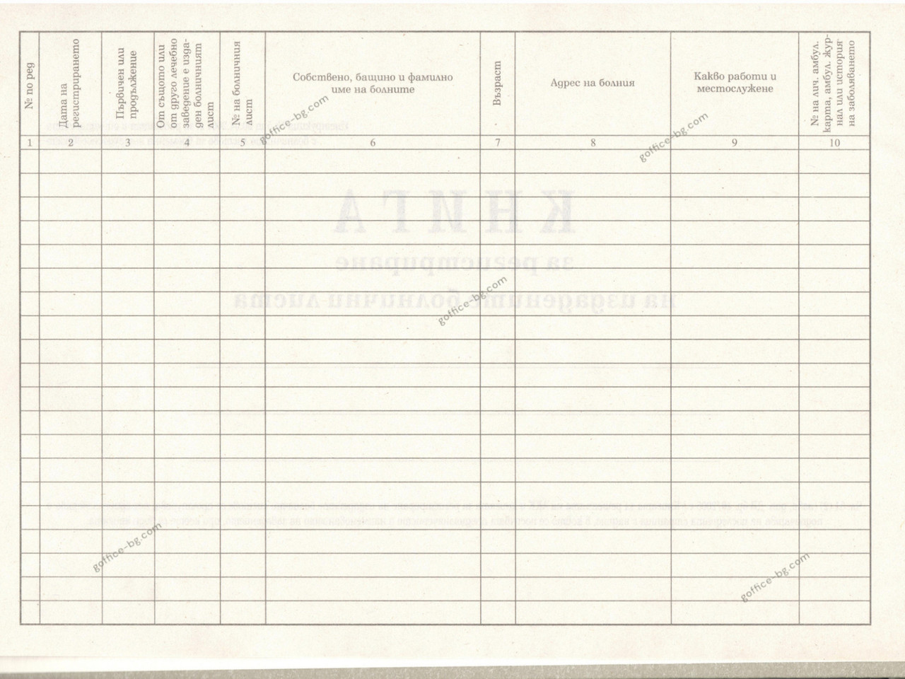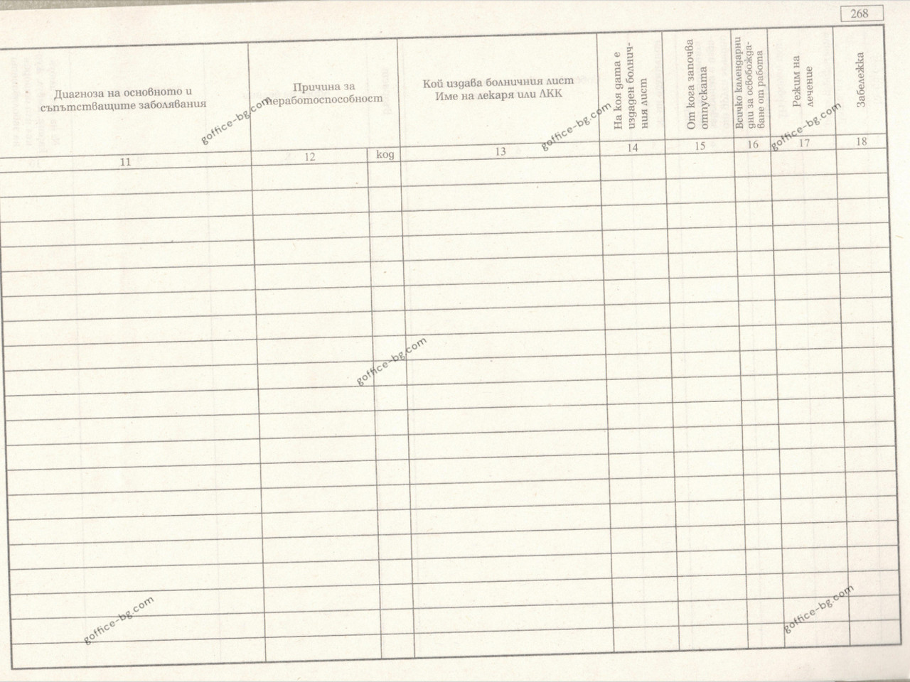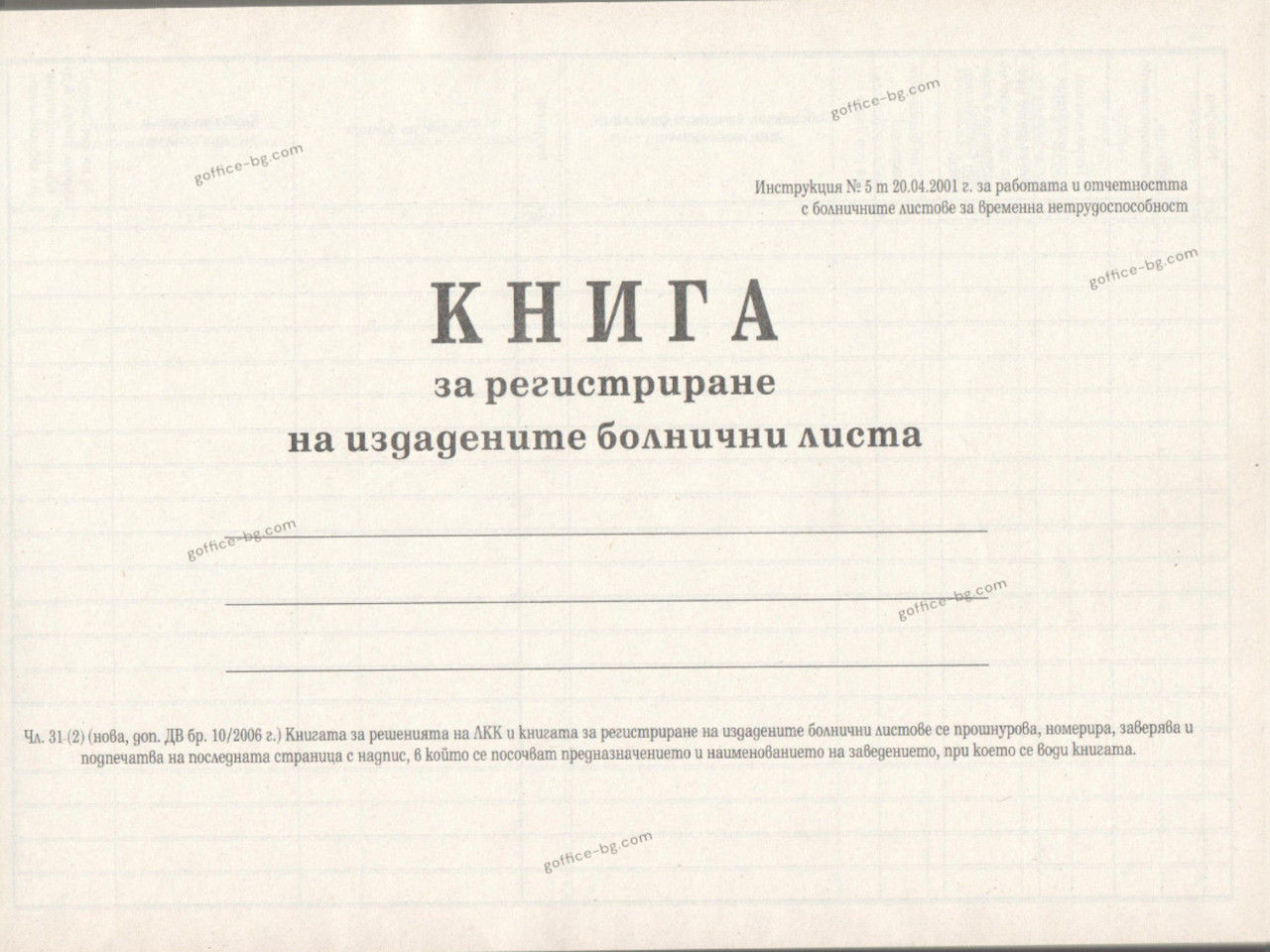 Книга за регистриране на издадените болнични листа за временна неработоспособност