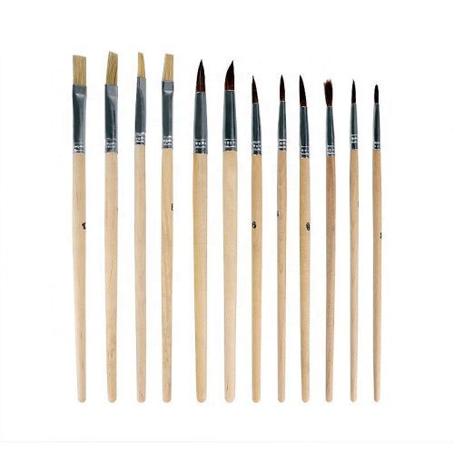 Съдържа по две обли четки с размер 2, 4, 6 и 12, както и по две плоски четки с размер 8 и 10