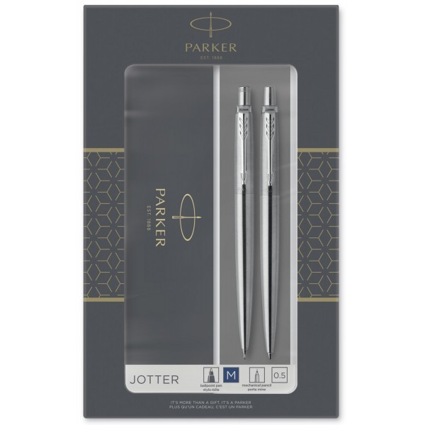 Комплект Химикалка и автоматичен молив Parker Royal Jotter Stainless Steel в подаръчна кутия
