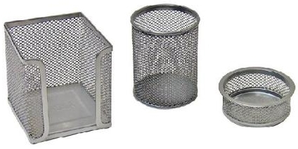 Компплекта съдържа: моливник, поставка за хартиени кубчета и кламеродържач