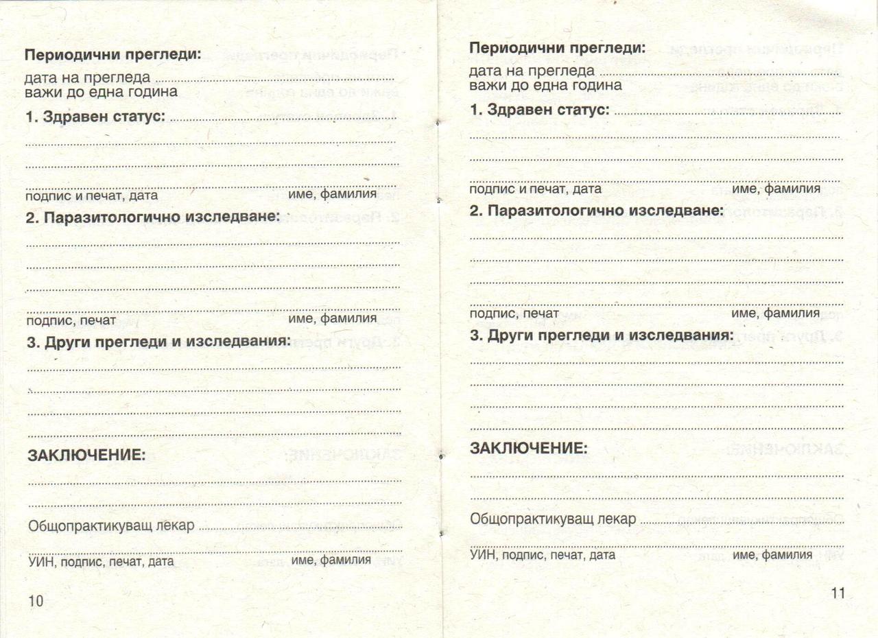 Лична здравна книжка /за работа/