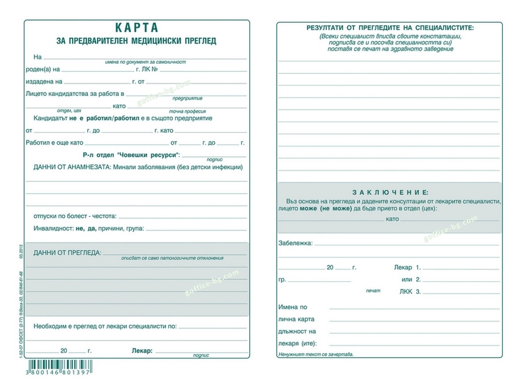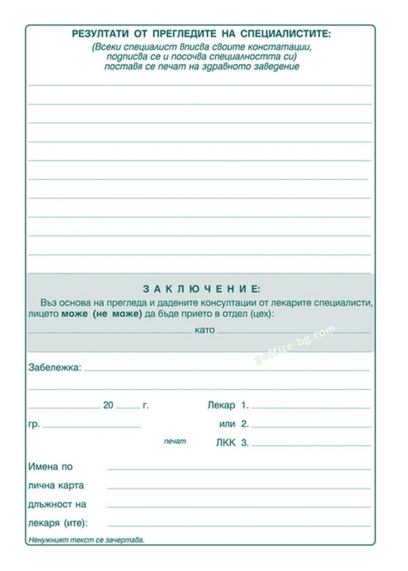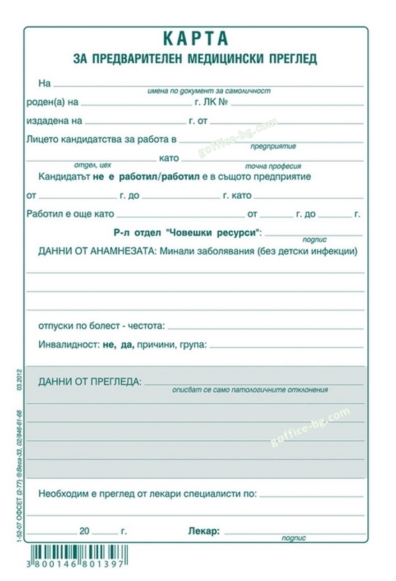 Медицинско свидетелство за работа (Карта за предварителен медицински преглед)