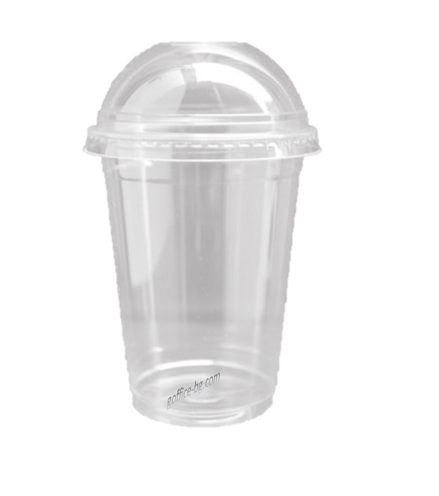 Пластмасова чаша бомбе с капак 400 мл. за коктейли, сок, фрапе, фреш, шейк
