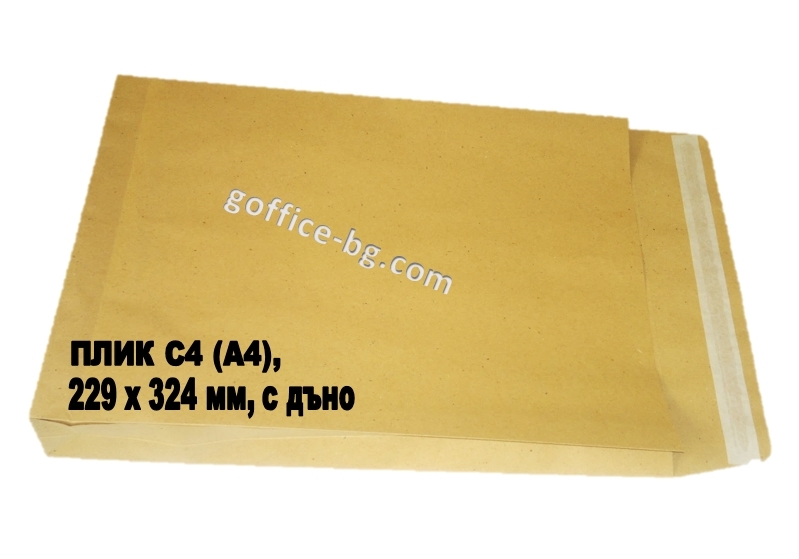 Кафяв плик с дъно и разширение, със самозалепваща се лента
