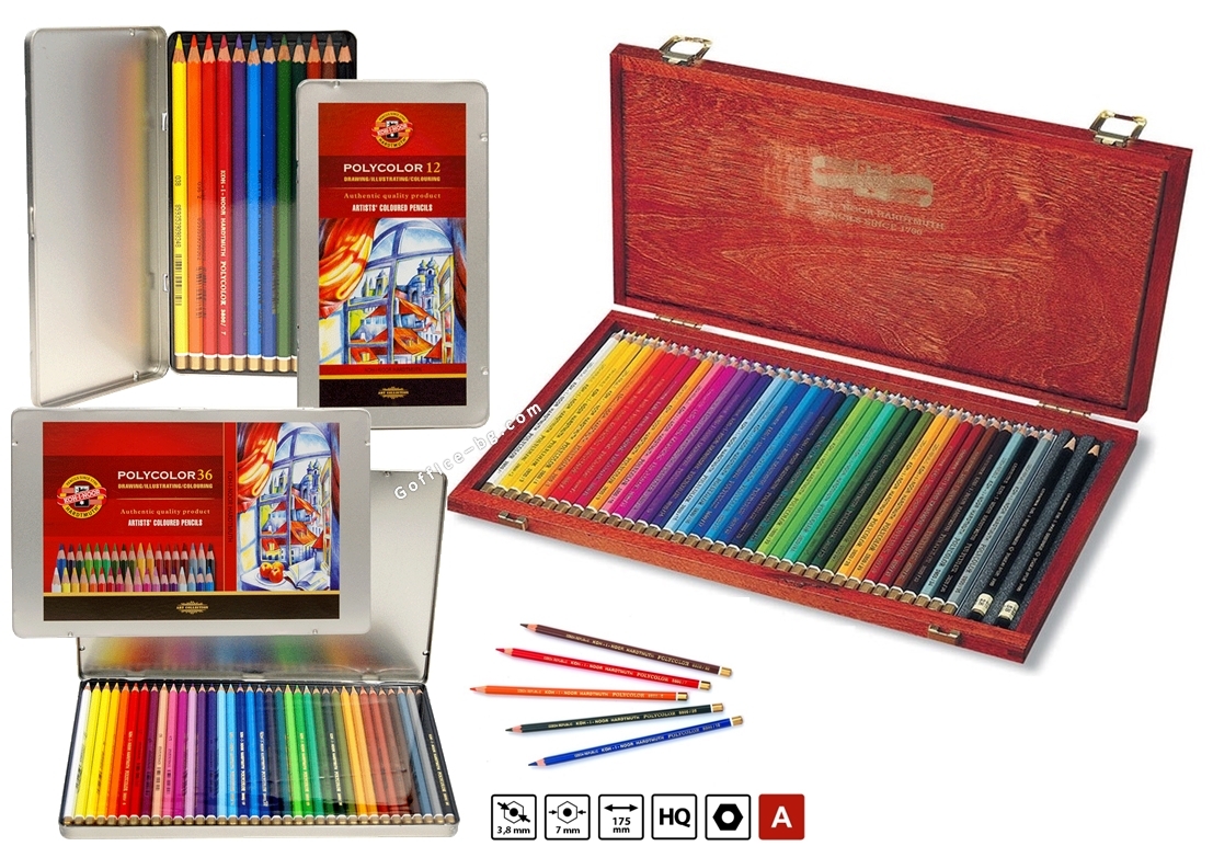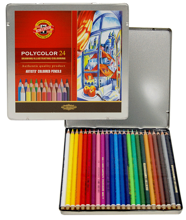 Професионални цветни моливи Поликолор (Polycolor) на Кохинор в метална/дървена кутия
