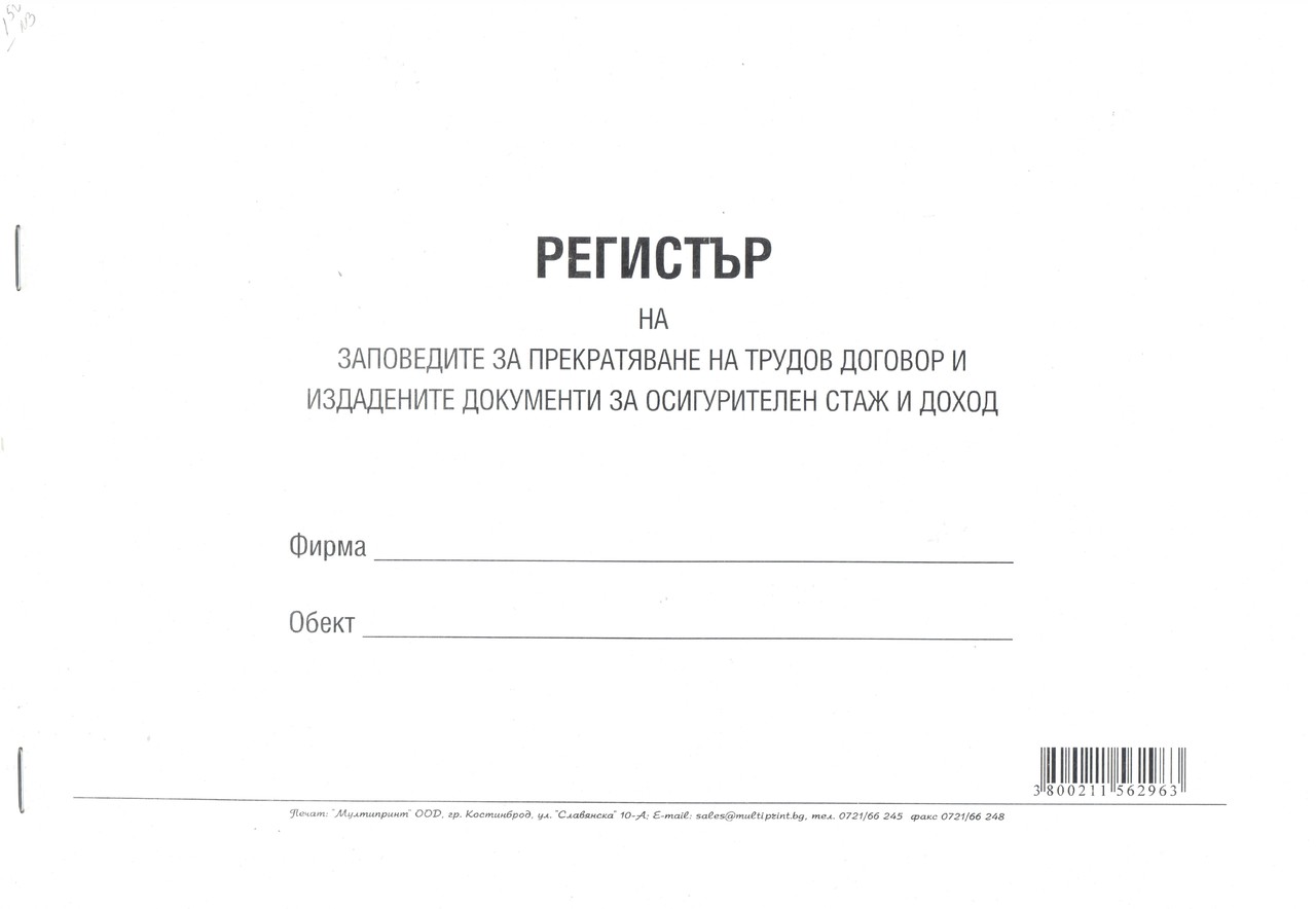 Регистър на заповедите за прекратяване на трудов договор и