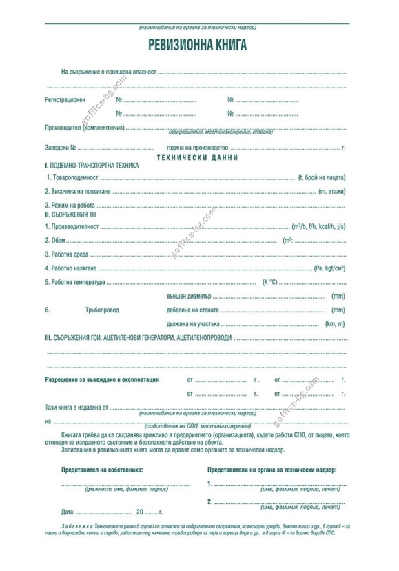Ревизионна книга на съоръжение с повишена опасност (СПО)