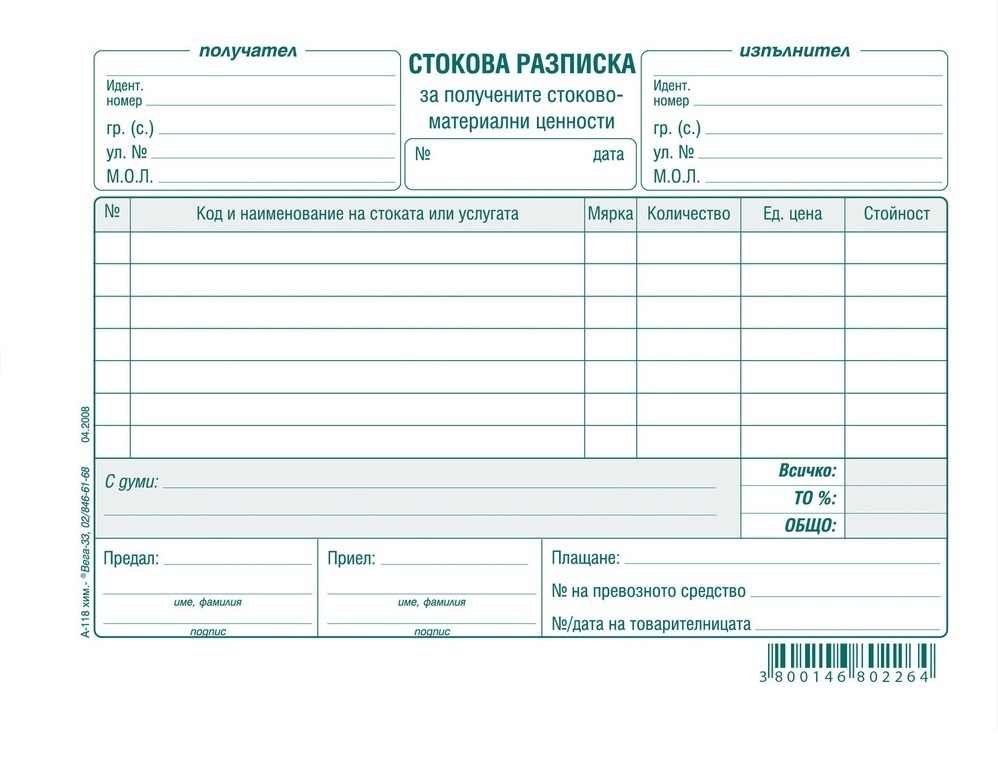 Стокова разписка за получени стоково-материални ценности