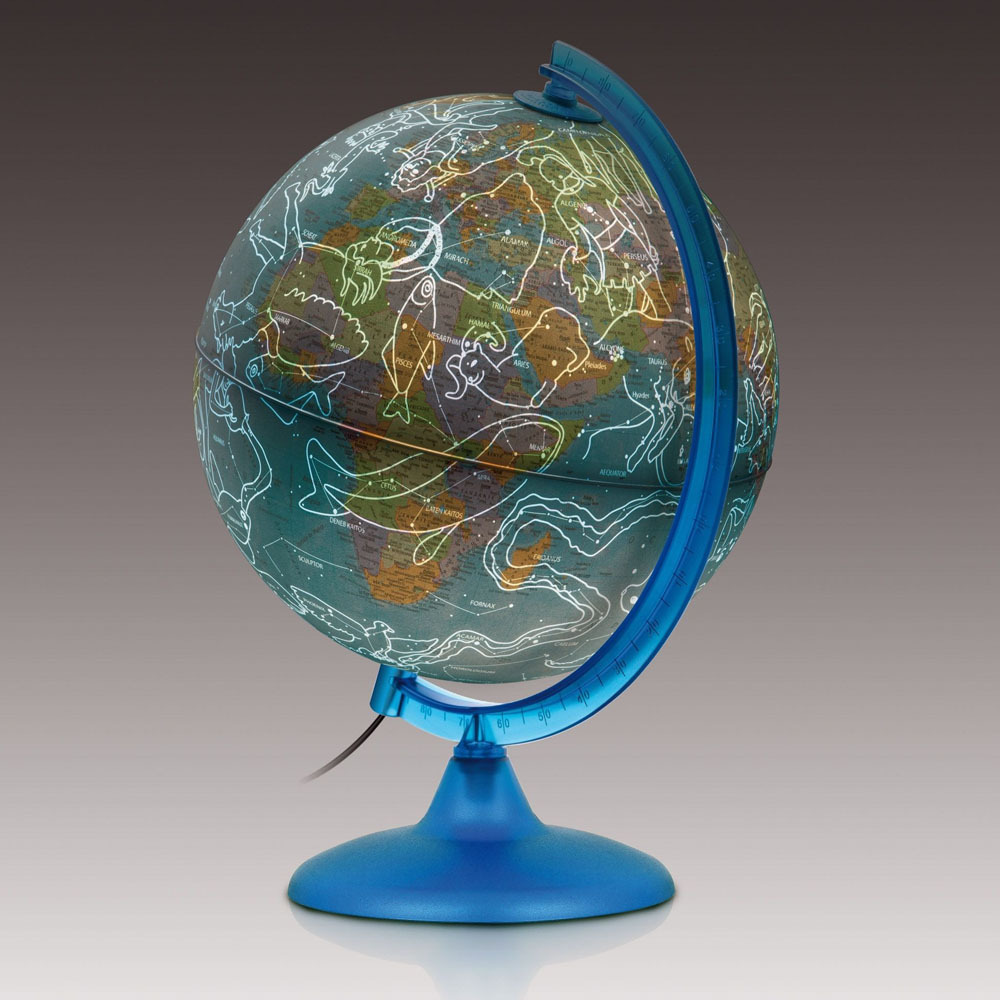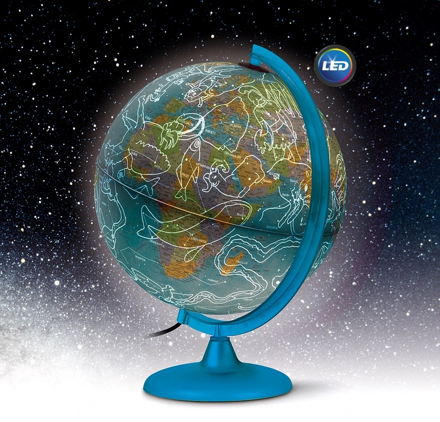 - Осветен: изобразява нощното небе, като съзвездията са очертани и надписани с техните латински научни наименования