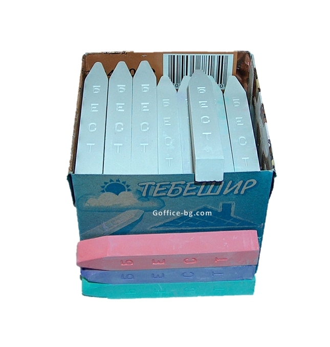 Кутията съдържа 39 броя бели и 3 цветни тебешира