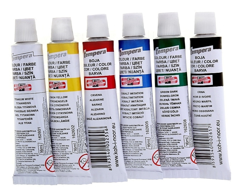 Темперни бои Кохинор в тубички от по 6 цвята и 10 цвята