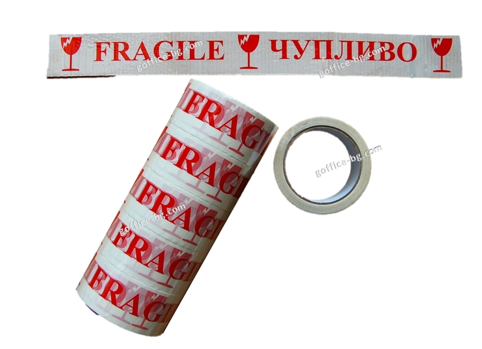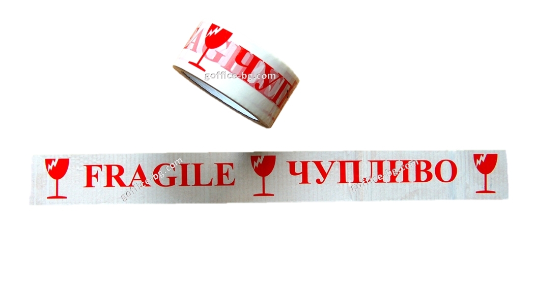 Обозначително тиксо с надпис Чупливо на български и английски език, комбинирано
